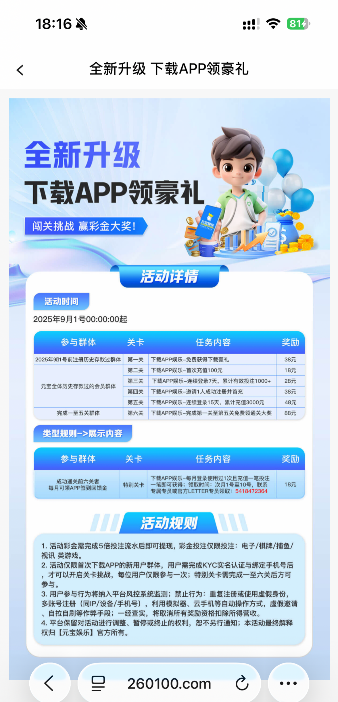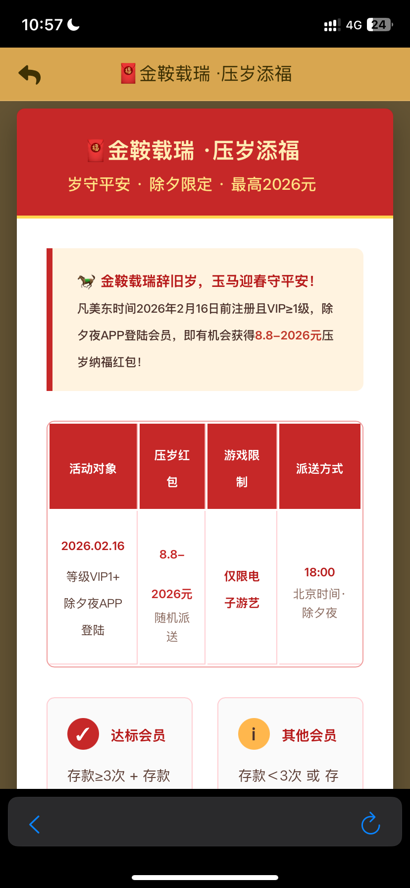 一年比一年缩水活动搞得像狗屎一样,回馈的平台很少,基本就统计几个月或者一年内打码和充值,大部分都是充值活动,想白嫖很难了,历史注册保底都没有的,时代变了,不念旧情,只讲现实!很难走下去,不活跃的回馈也是卡款,一毛不拔,狗庄养不起了现在,无底洞,深不可测