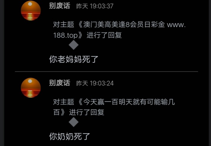 薛总 我是你爹狗杂碎天天发一些没用的帖子老酸菜,重复来重复去没一点营养,刷你妈个逼毛
