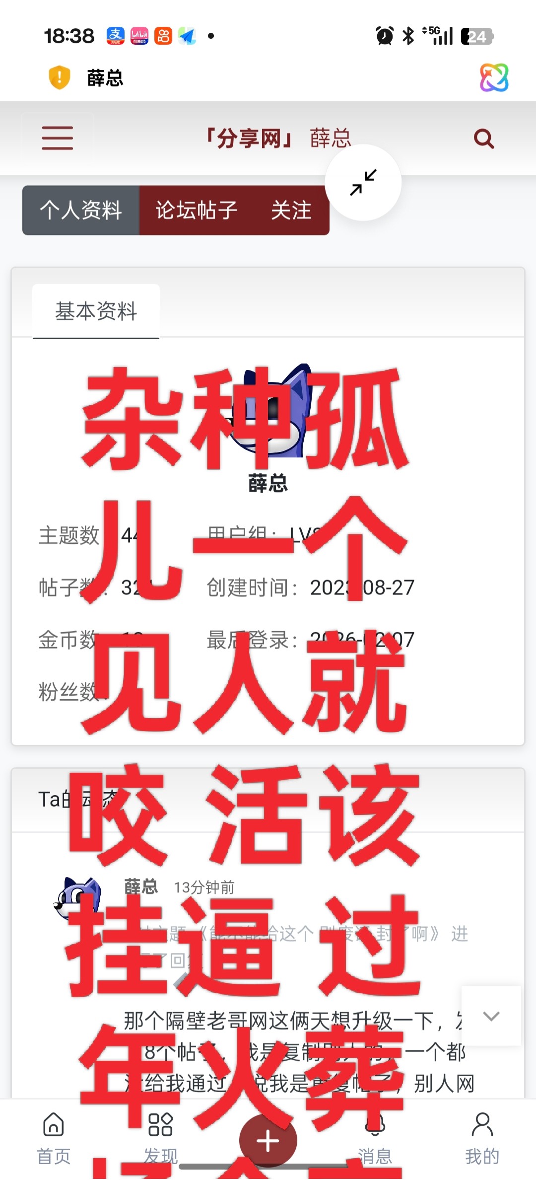 薛总: 你无知不懂不怪你,但是不要侮辱老哥智商,清朝老酸菜了都要黄了的帖子,不贴实际的水贴,没营养还一直重复发来发去,说还嘴硬不服起,我真草了你