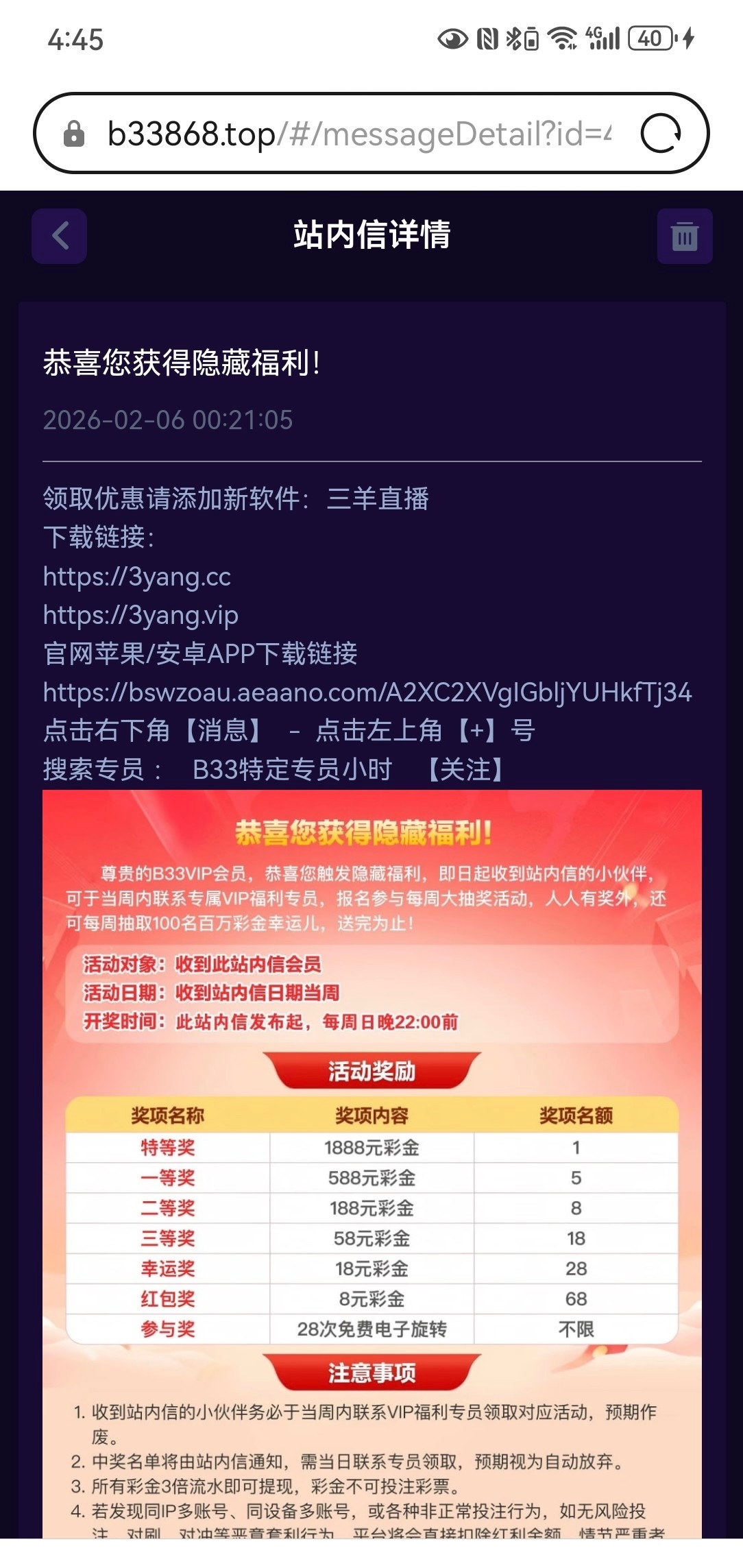 碰到就是88 我以前领过一次 zai w领取就让充值了 网址https://www.89569658.fit/wap.html#/login