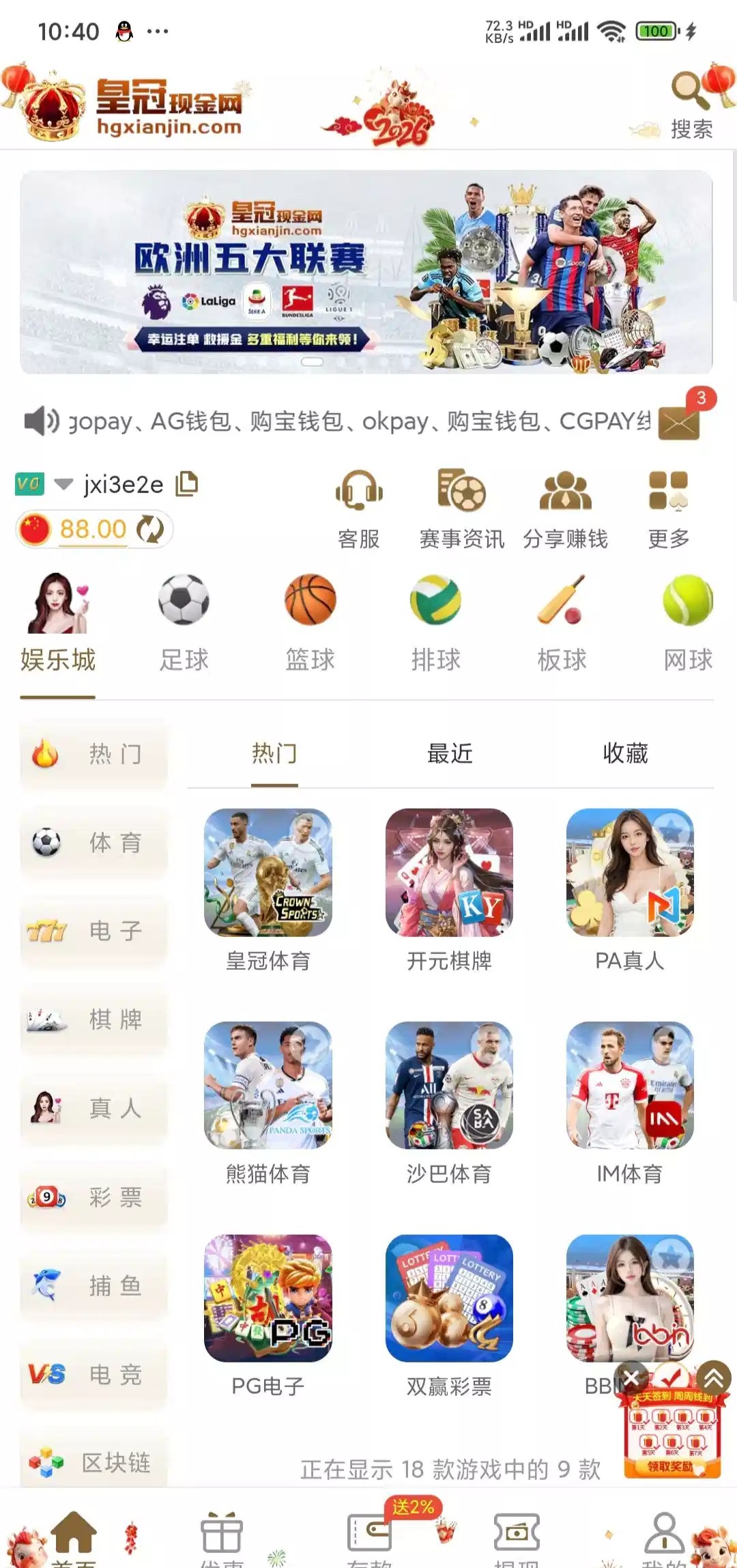 我以前注册的两个号都有88,没充值过,有号的可以看看,链接https://www.hgxianjin16.com不知道啥活动