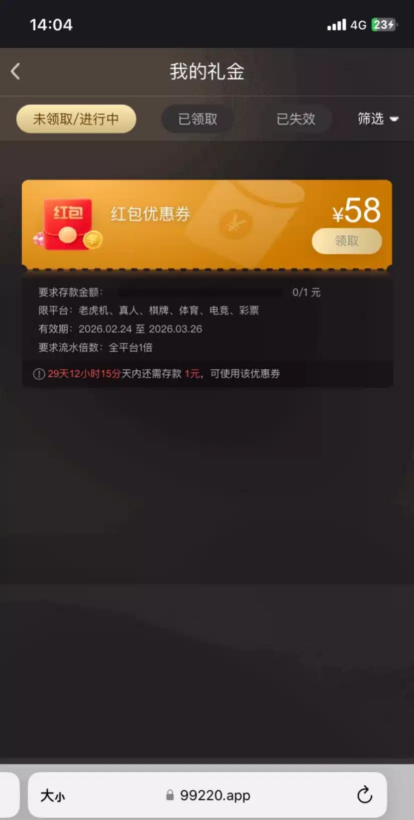 可以登陆看有没有 我没充值过也有,新人注册也送彩金