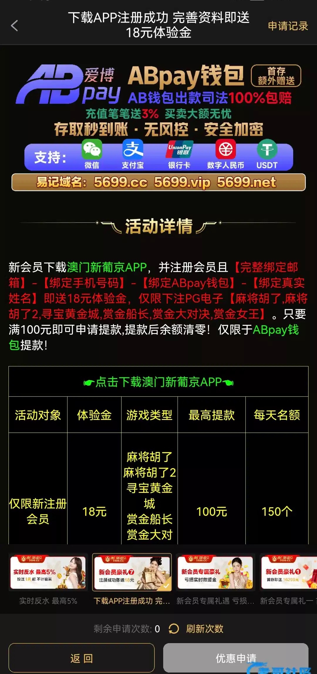 3、本站资源均来自互联网-需自行判断与负责。每日更新(论坛内容仅用于 薅羊毛 白嫖 论坛严禁充值娱乐 严禁任何形式推广 发现一律提交当地公安 )感谢您的支持!