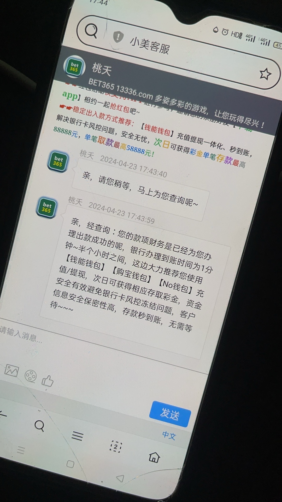 接上回100一拉,这个月发工资了,冲了3800,打了4万流水,提款5000,拒绝出款,要求罚10倍水,90一拉,直接死光,避雷990金沙