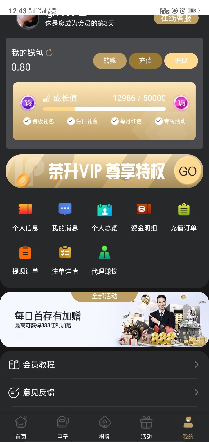 签到的彩金最多提现188,除非有充值过