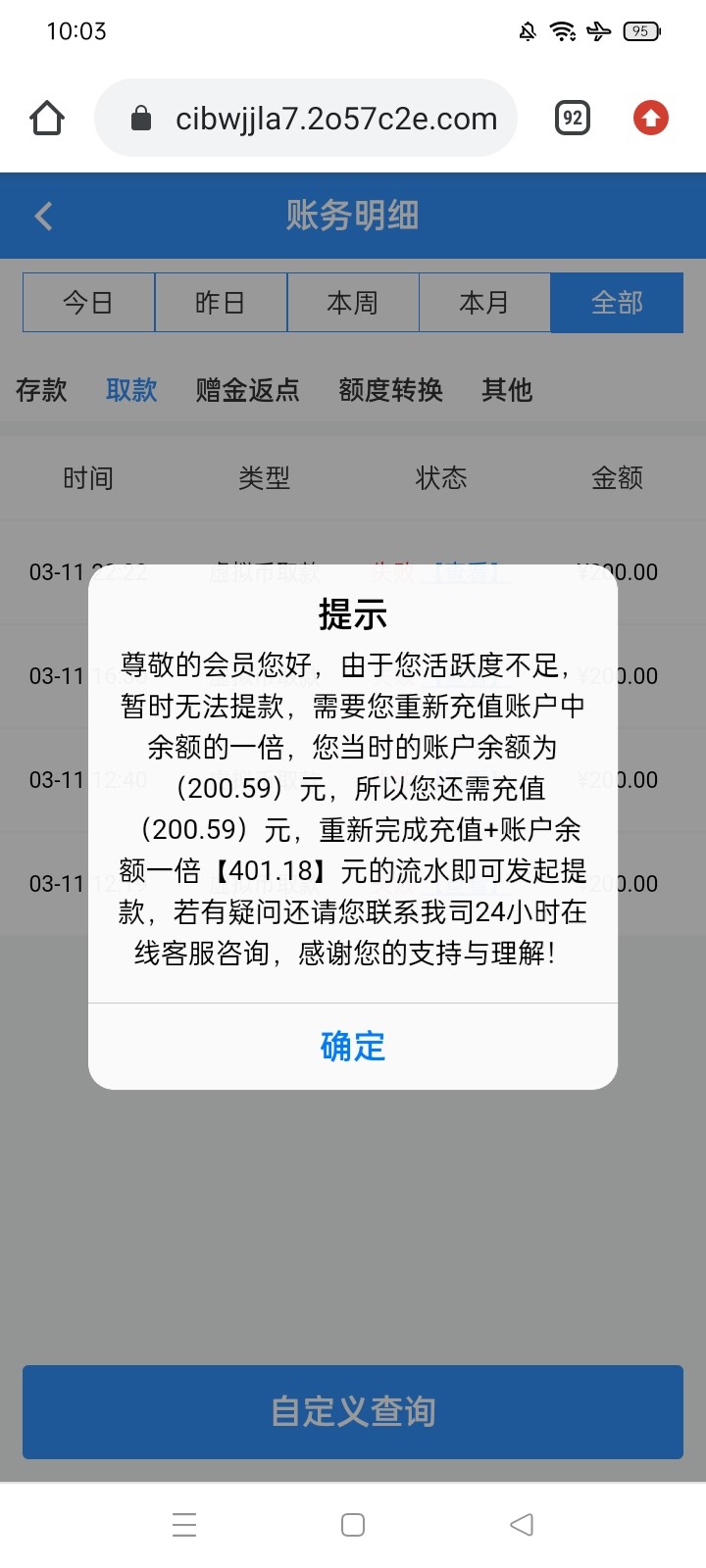 开云提100,到了2次100,第一次提。显示提款失败,结果到账了100,哈哈