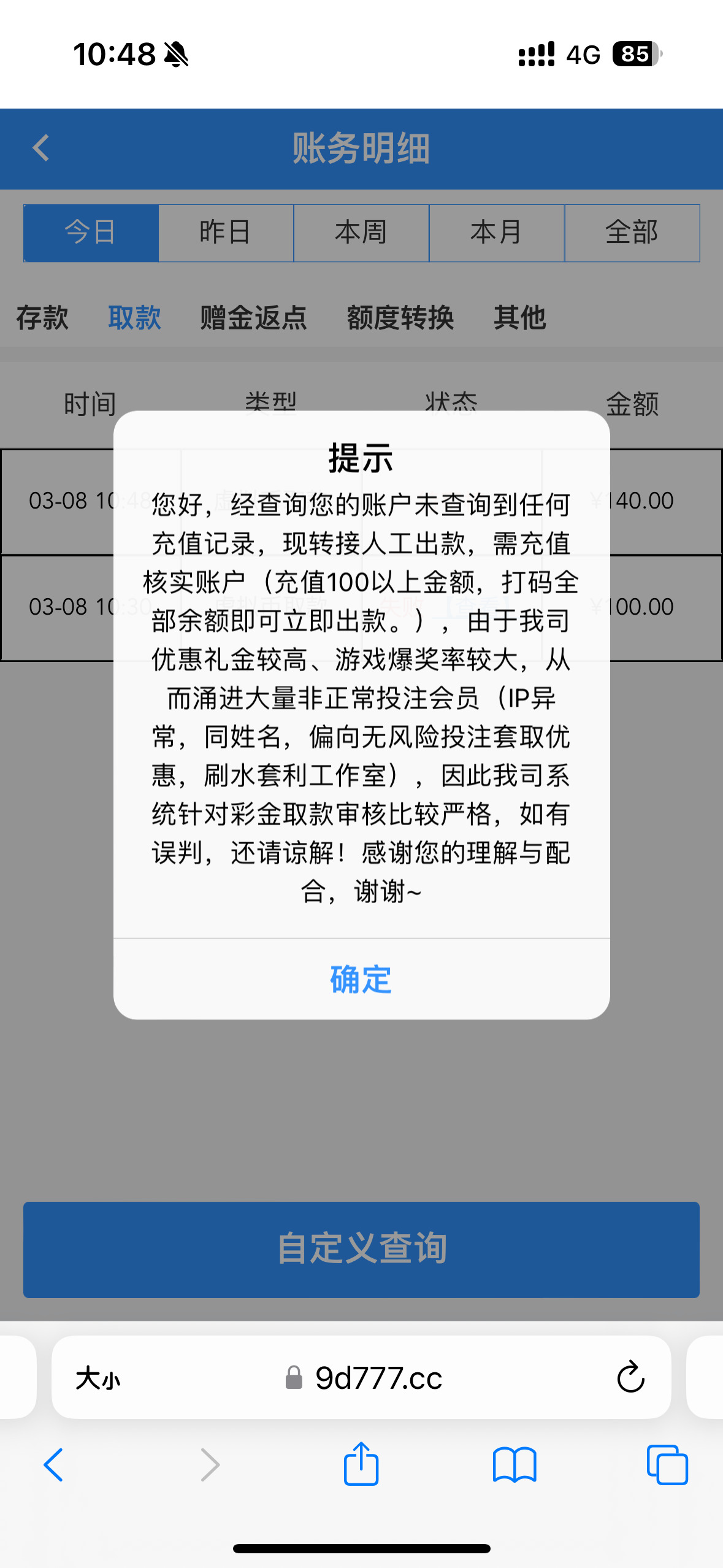今早提100后面叫充100核实 然后打到270充了100现在成功下分