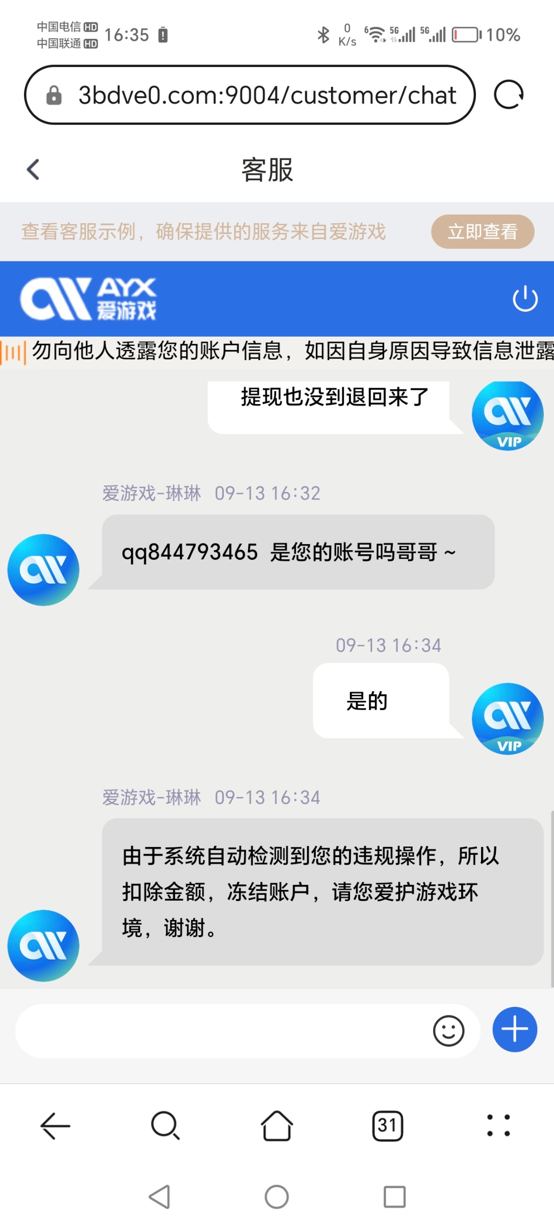 赢钱就说违规操作然后冻结账户,大家注意安全,