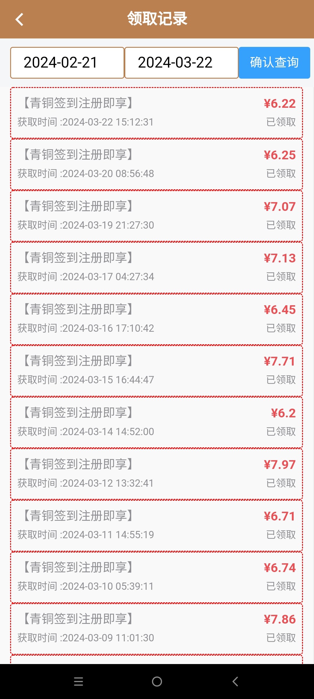 注册绑卡每日免费签到6-8元,这系列部分号码是特邀注册秒18.88,满100即可提现,这玩意系统识别,要是不绑卡签到两天就没了,我连续领了一个多月了,出款自测!
