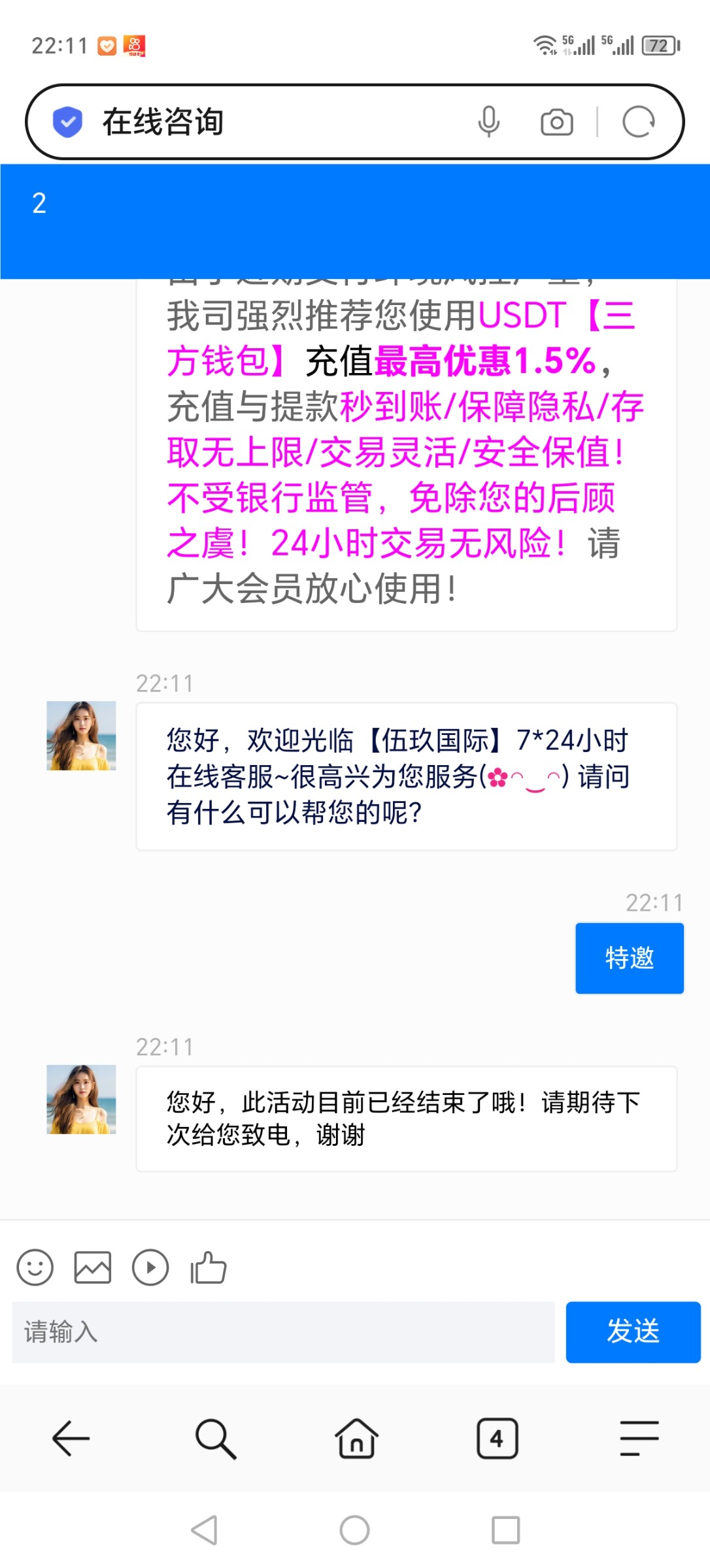 台子网址59guoji.com不用注册进台子先找客服发特邀两个字,客服会让下载玖聊,弄好了直接发手机号,是特邀的话会让你注册要你账号,不是特邀就别注册了等特邀 隔壁老哥社区 发的