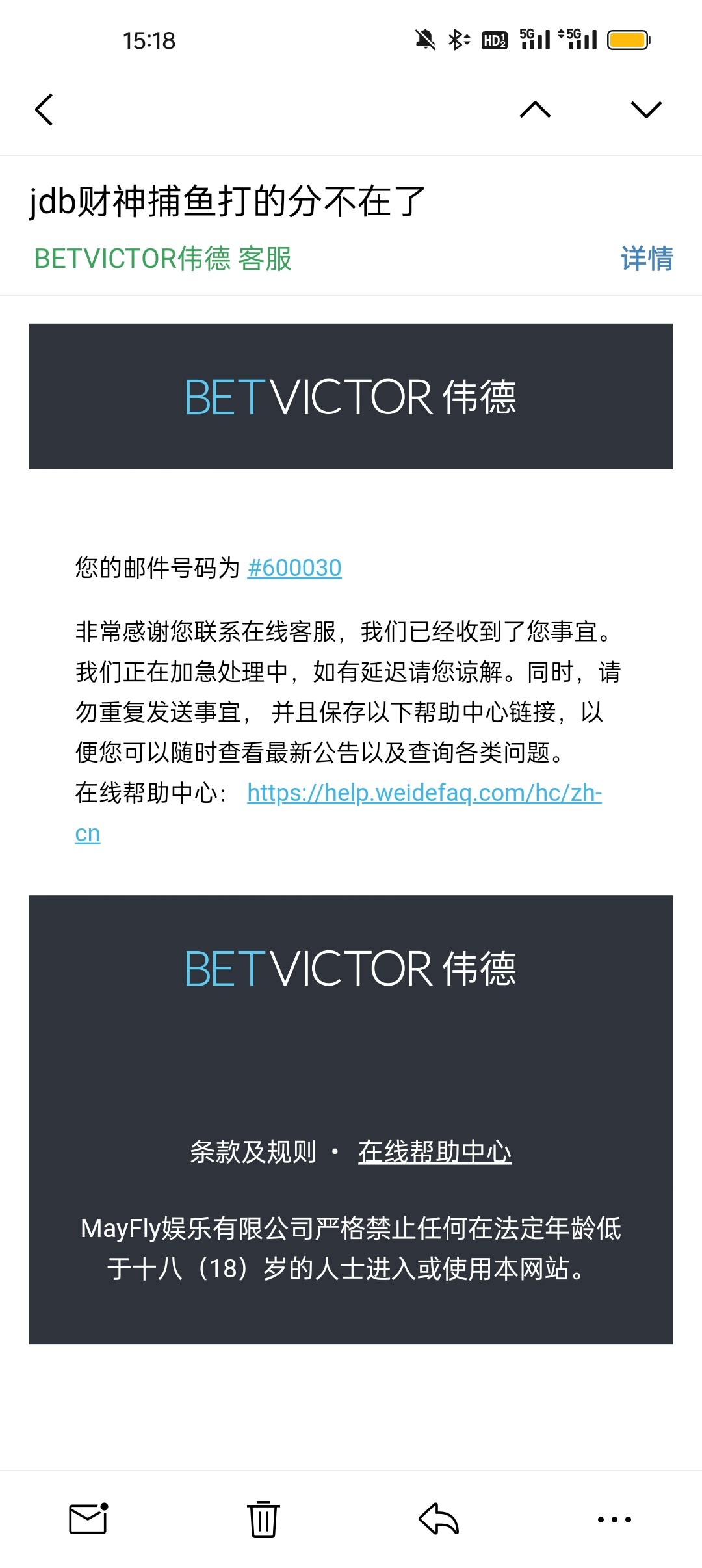在里面领存100送300  没打到然后第二次存100送100 第二次打奥林匹克打到800多 然后后面买免费转输了还剩132 进去财神慢慢磨到500去高级场打到16800 突然给我错误代码9999里面的钱也没退出来到现在进不去了联系客服说他们没有这个游戏说我进不去哪里有分我笑了卧槽 狗伟德以后不玩了没有格局一直说我网络问题谷歌夸克 火狐 app全部试了一天了还是进不去晓兄弟们避坑啊