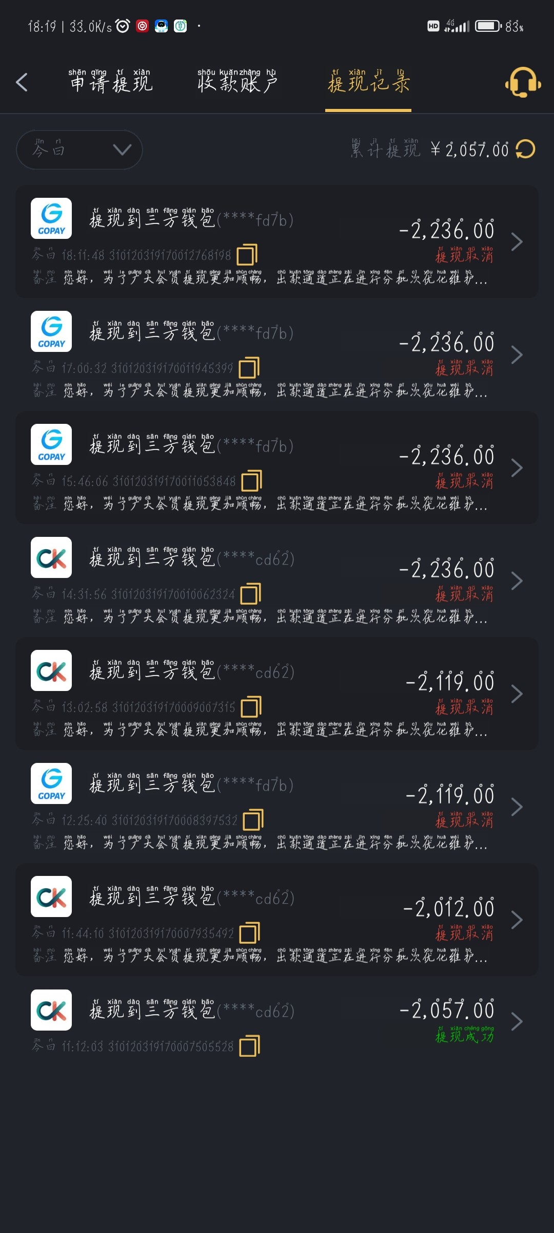 被黑金额:
