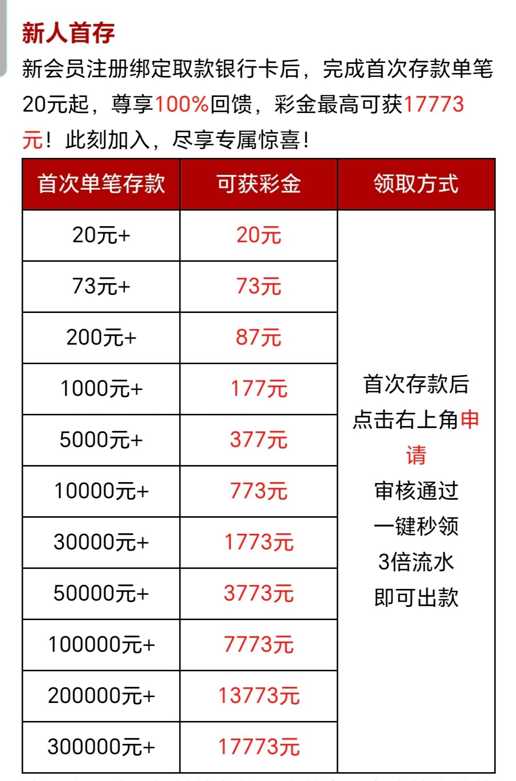 还有个 首存100+73+27+37【3倍流水】自助申请 (我出1000到账了)