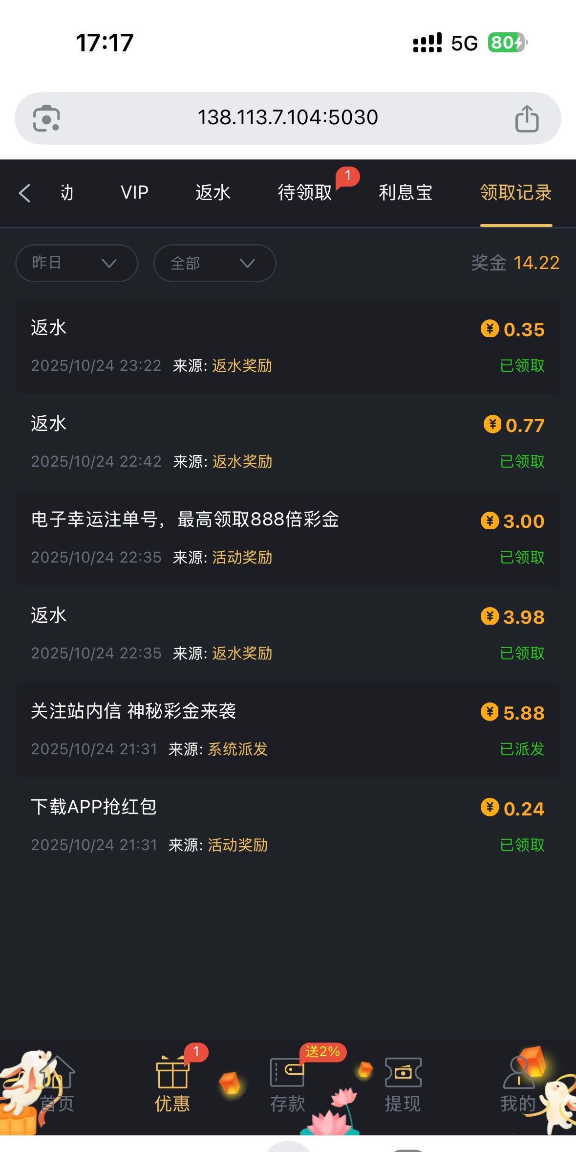 好久没登录应该都有 我就是好久没登录了 上去看到有彩金 网址432.com