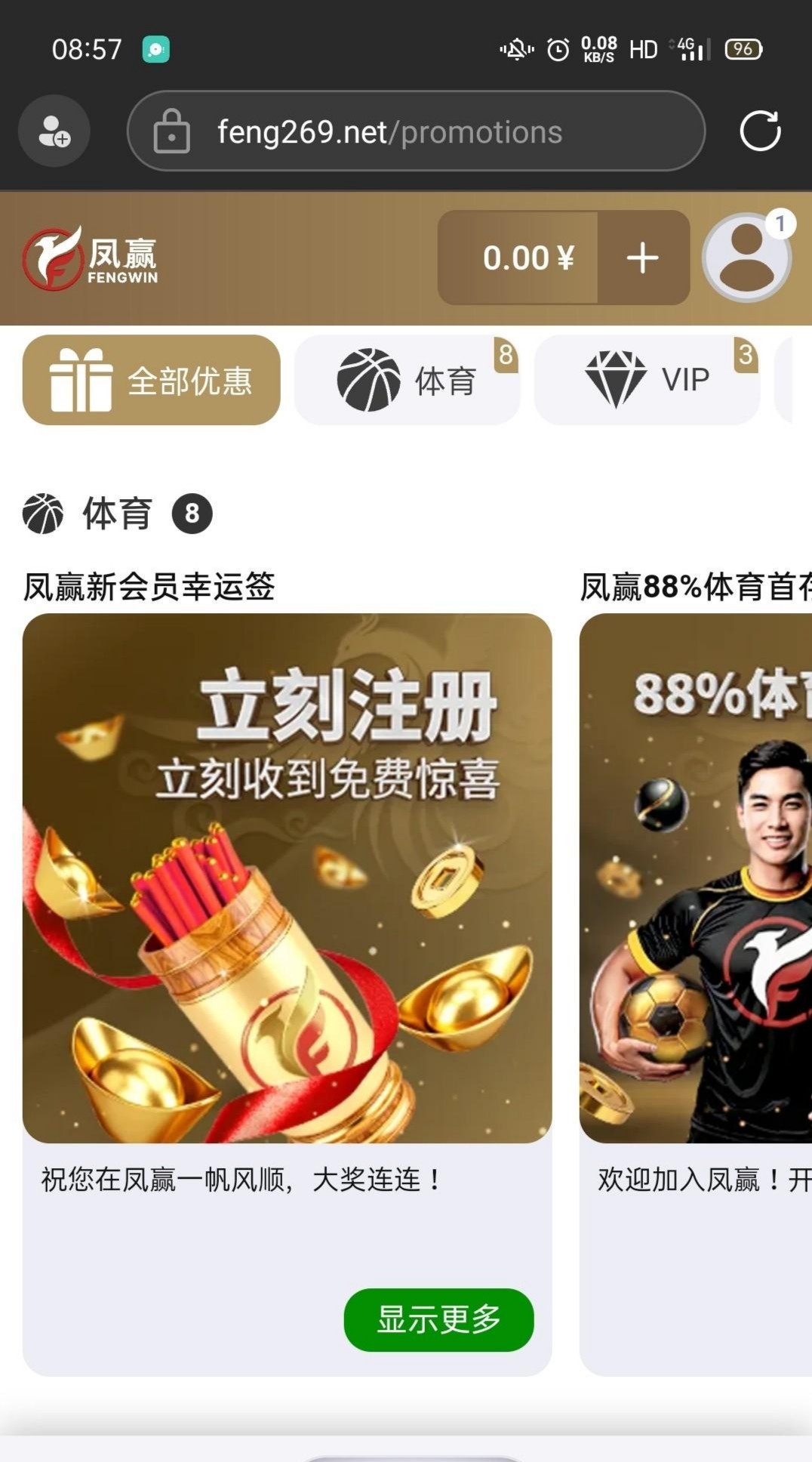 注册自动在个人中心,优惠活动抽取免费彩金。我抽到8块体育彩金。还没玩,出款自测。网址http://fengluck.com/