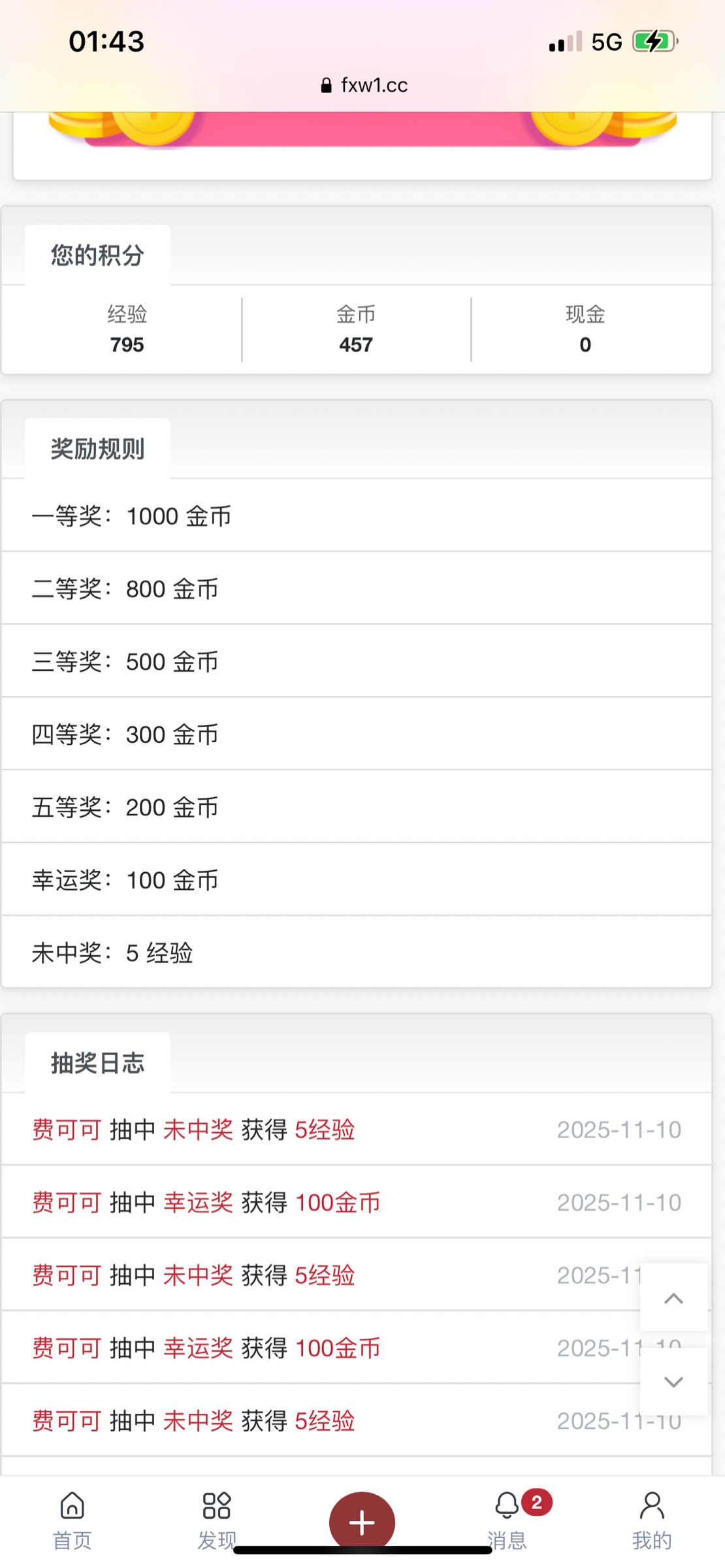 想抽一把,金币居然是负数