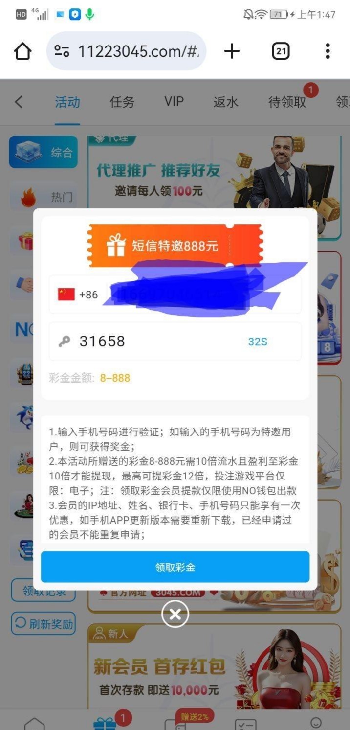 注册好之后优惠手机号验证领取网站 11223045.com