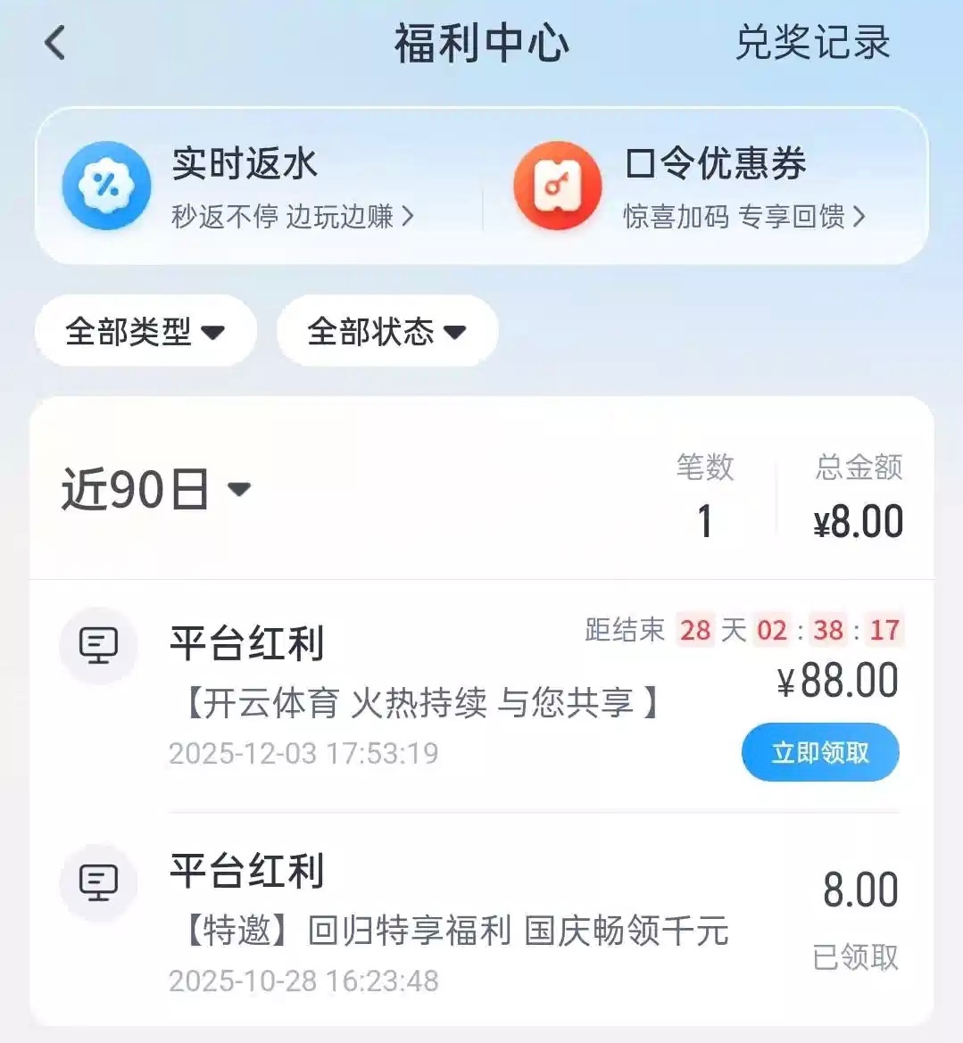 老用户福利中心有88回馈  具体上号看吧