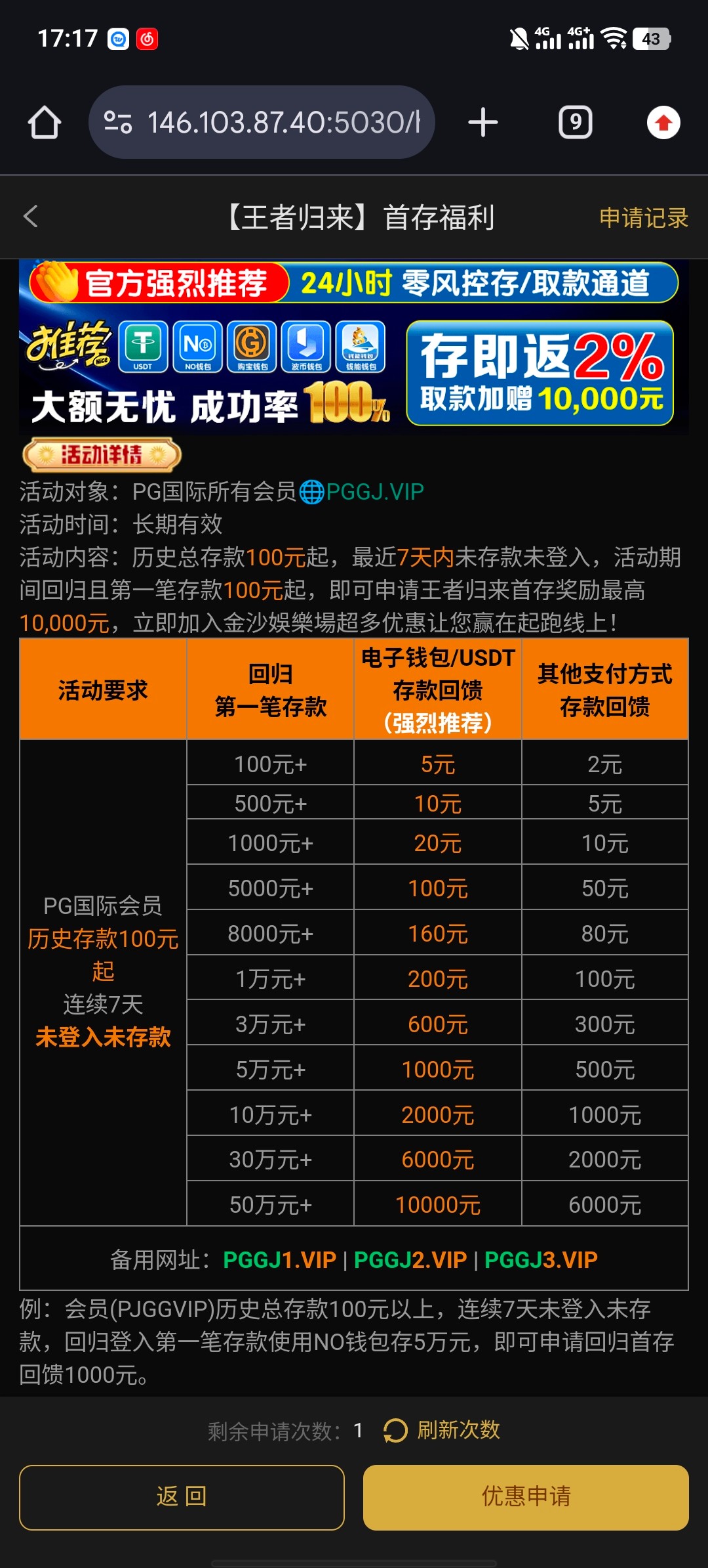 历史充值过过的自助申请最低5块