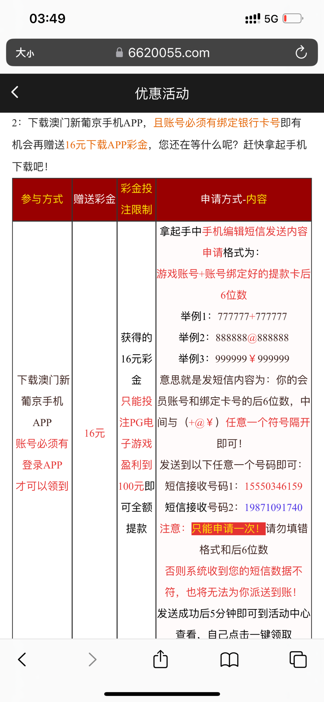 申请过16的,现在去发短信还能秒16