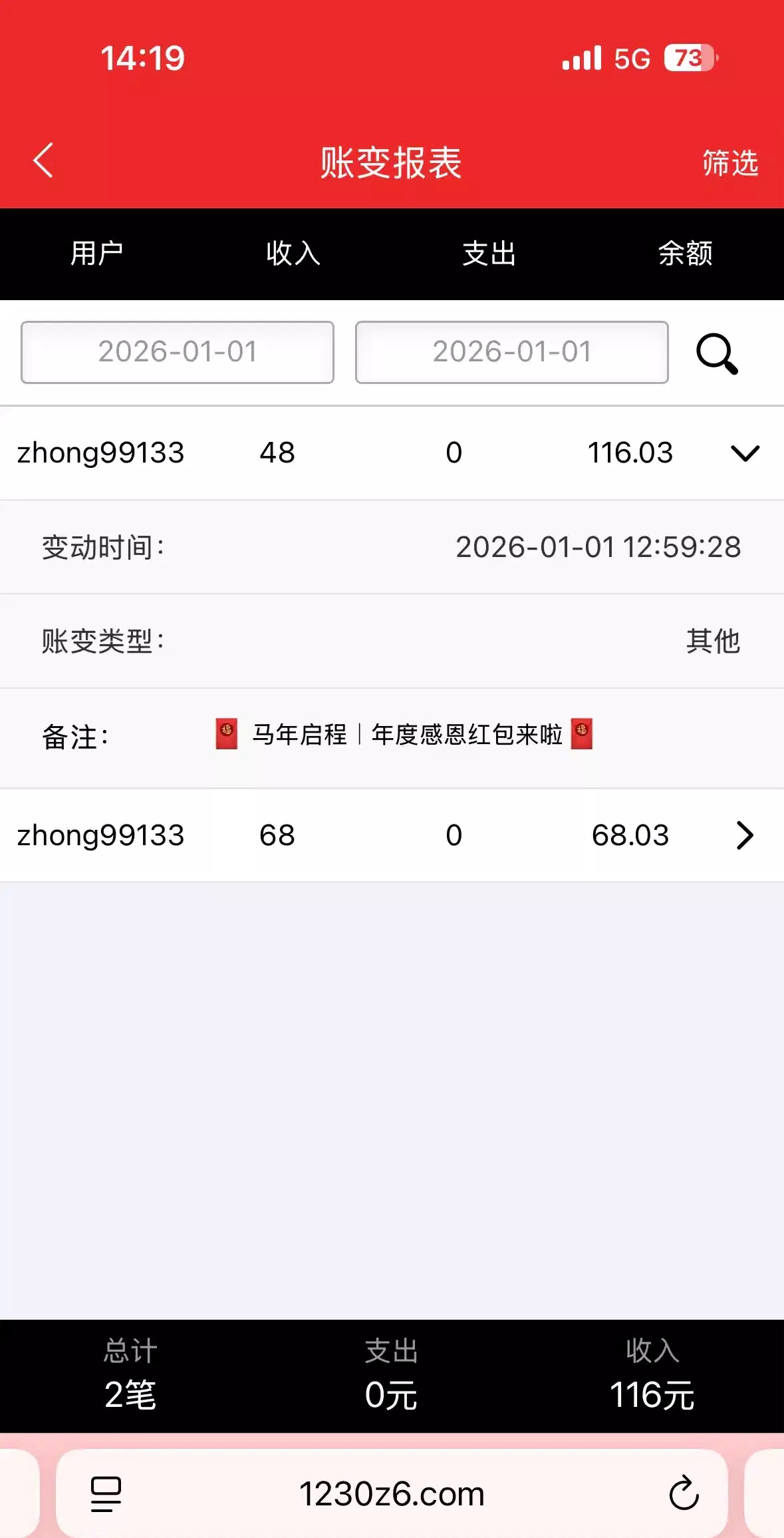 2025年1月1日至12月31日累积充值500的登录上去可以领彩金,有号的可以登录,我领了116链接1230z6.com
