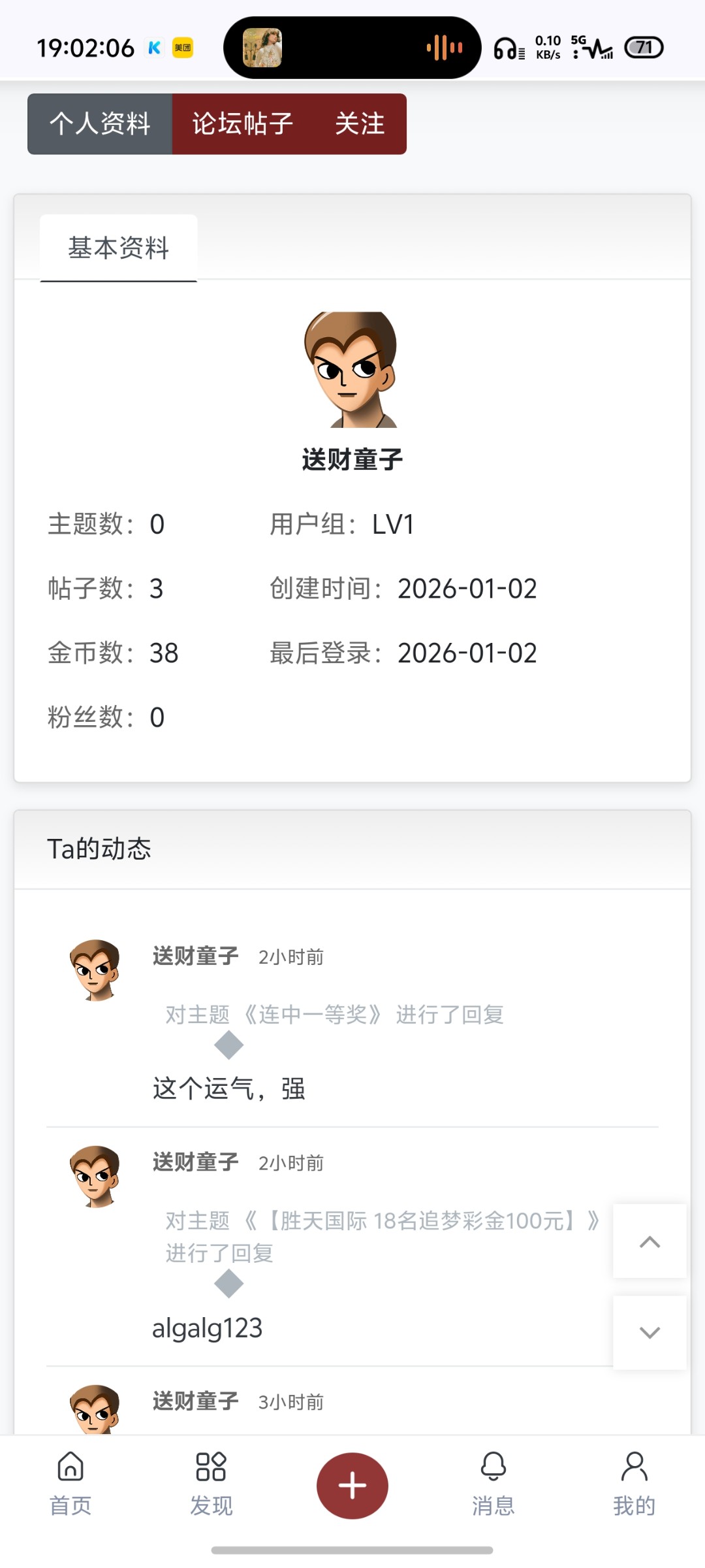 我是22号刚加的蛋蛋 然后注册了论坛 今天中了胜天追梦