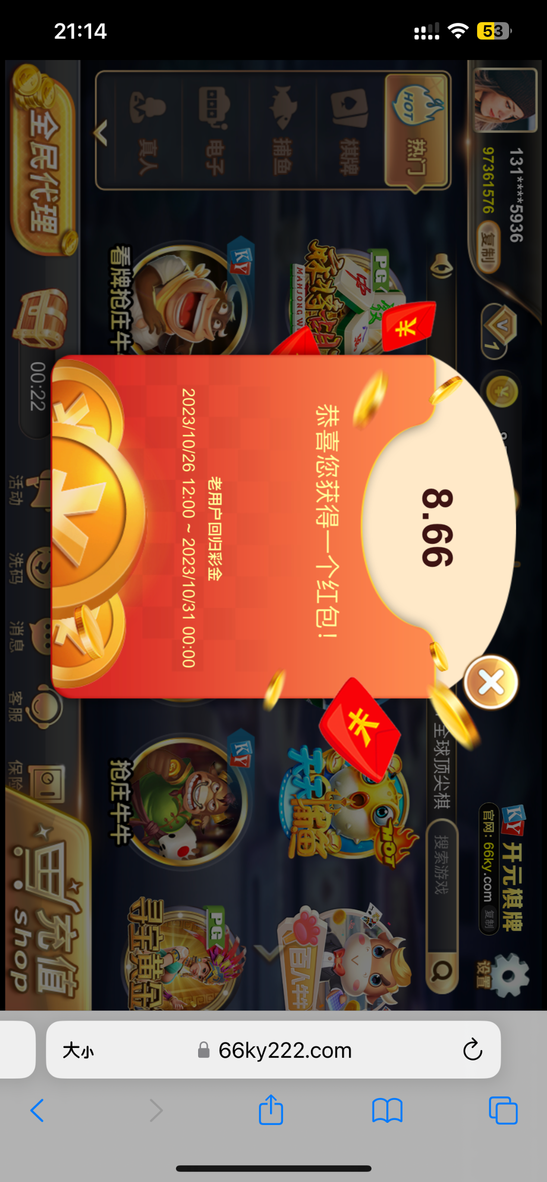 回馈:老用户有号登录自动弹出红包,抢了8块多