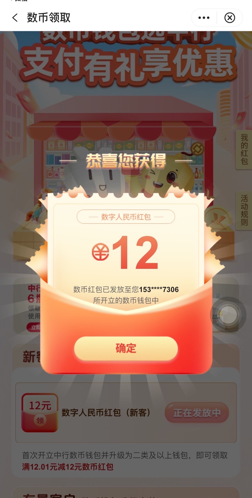 【中国银行数字钱包12立减金】 白菜