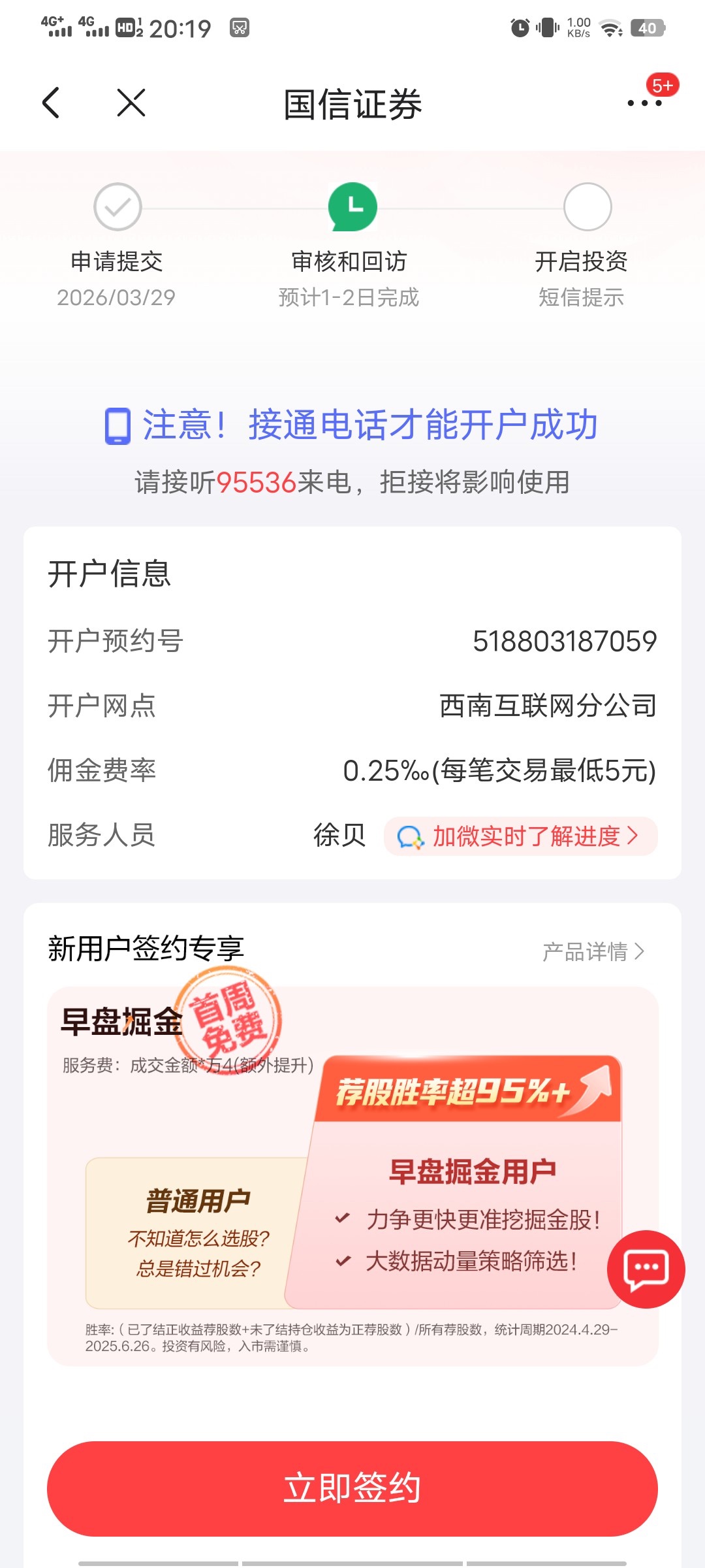 我刚申请开户,等明天回访开通,先发帖,后补发到账图