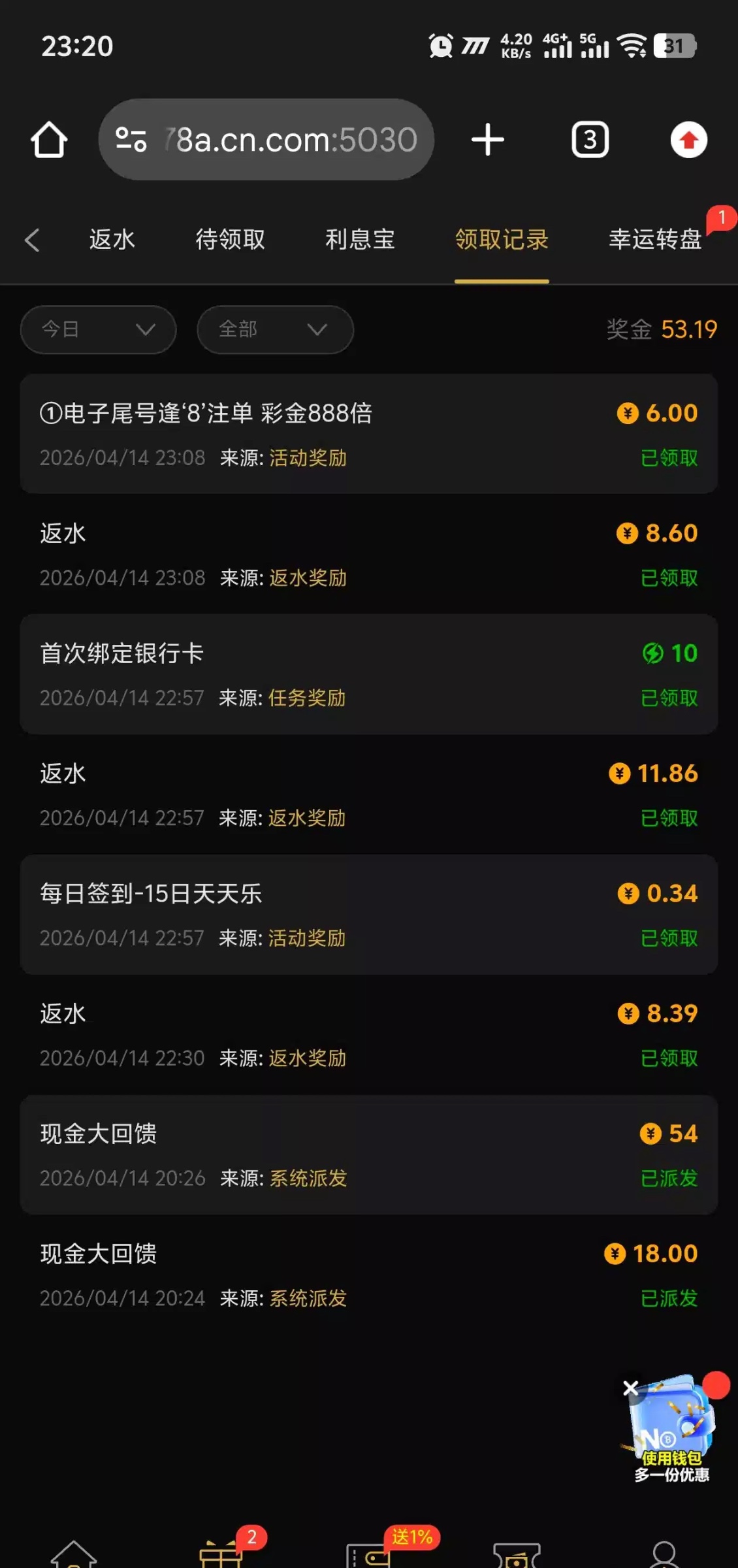 充值过的去吧,没充值过的估计没有,优惠回归那里还有最后一笔提现回归彩金,网址:0678.com