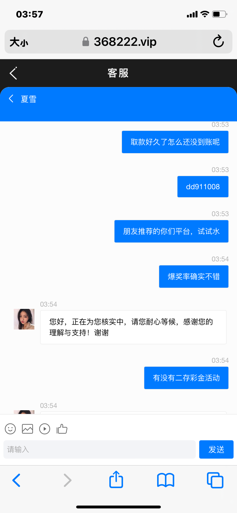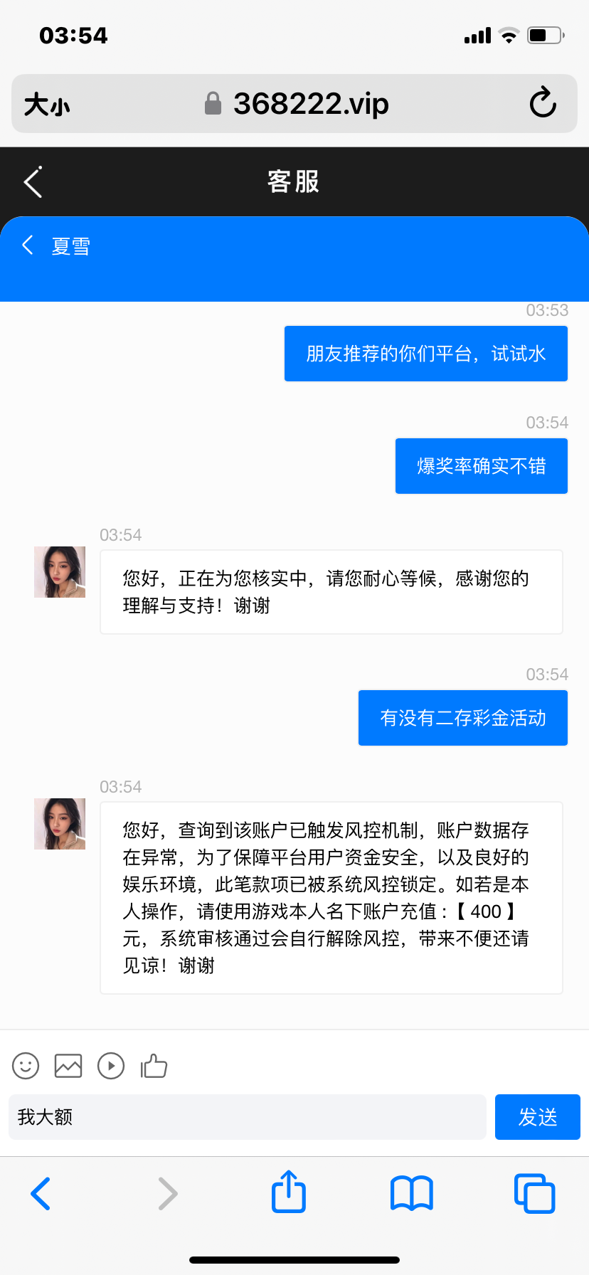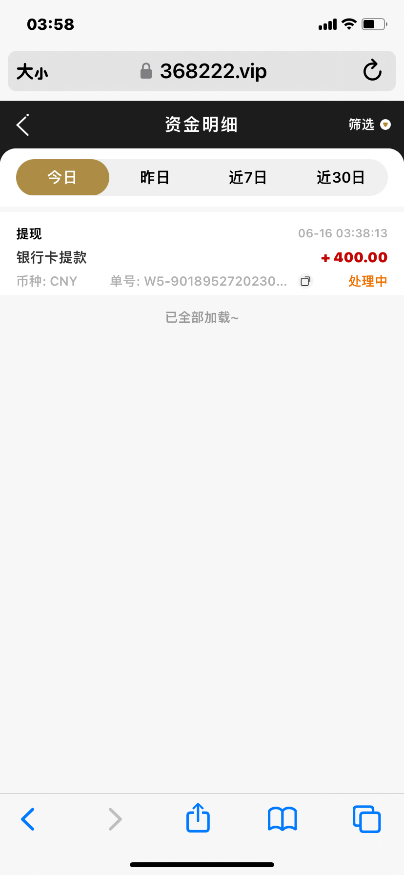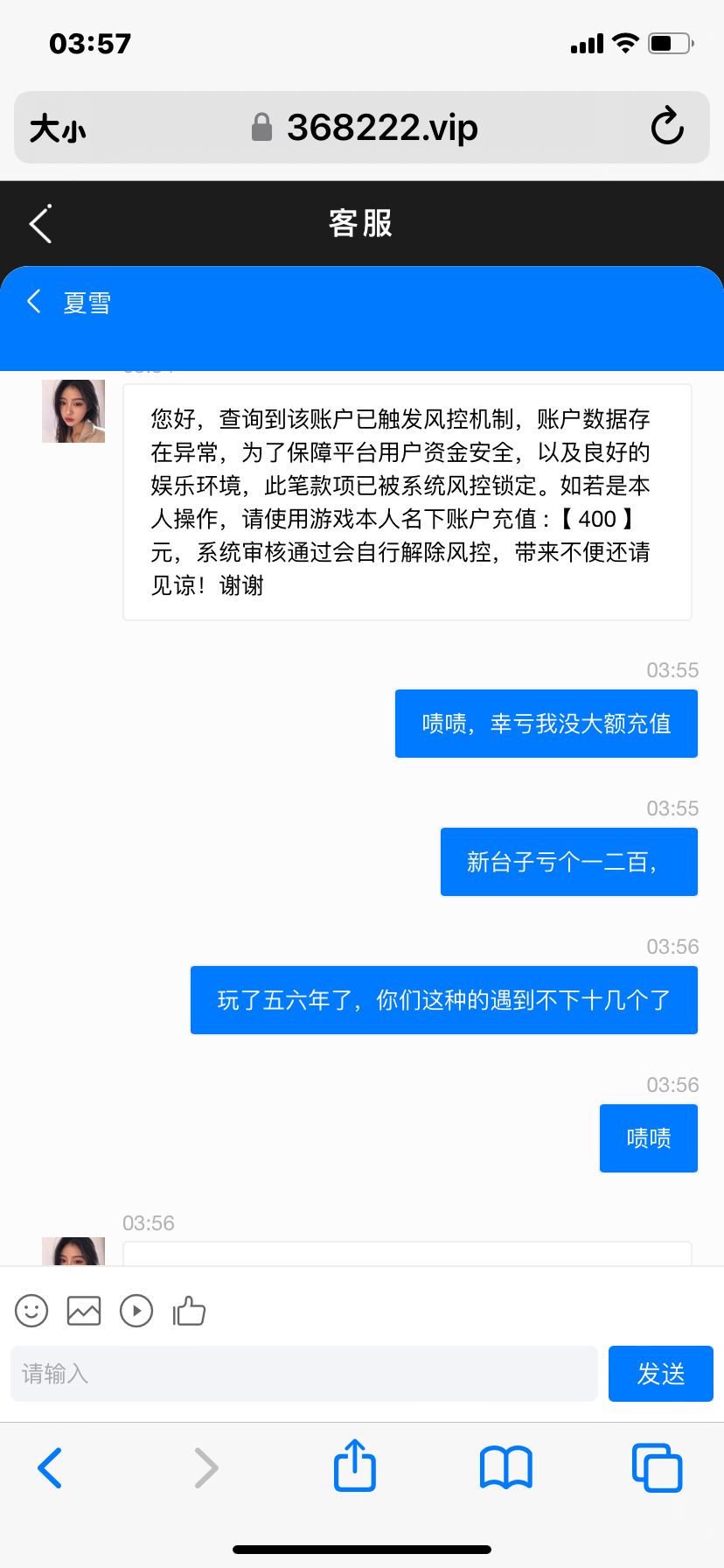 充值二百,先提现四百被黑,剩下的打到2700又输完,账号又被冻结