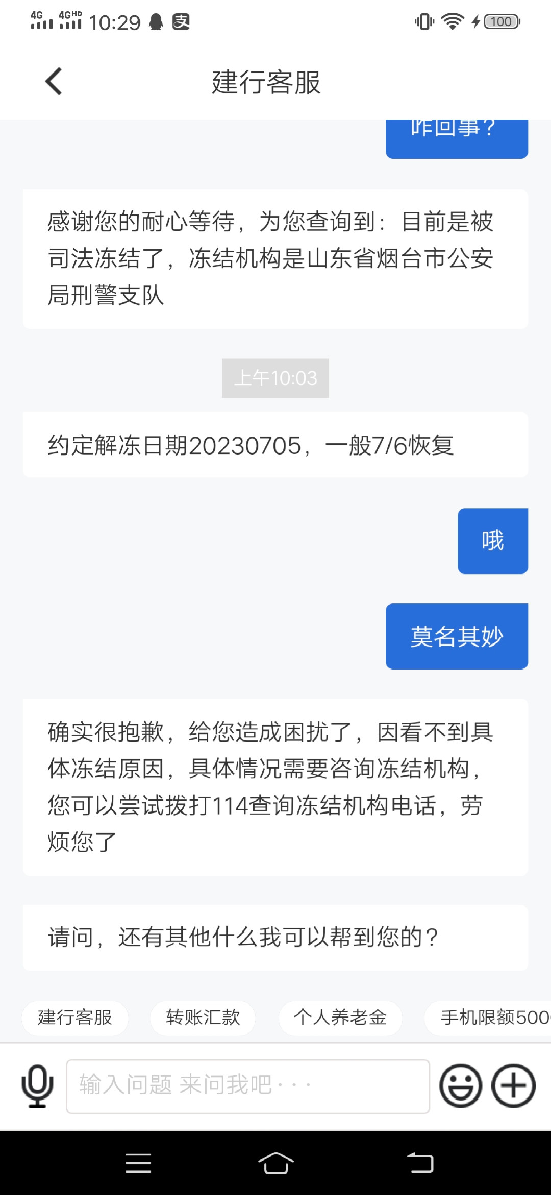 DDpay买了一百,几乎秒卖,建行卡收到一百块,直接冻结,是私人账号转进来的。冻结机构是我们当地刑警队,找银行客服说解冻日期明天。啥情况?懂的大神来说一下
