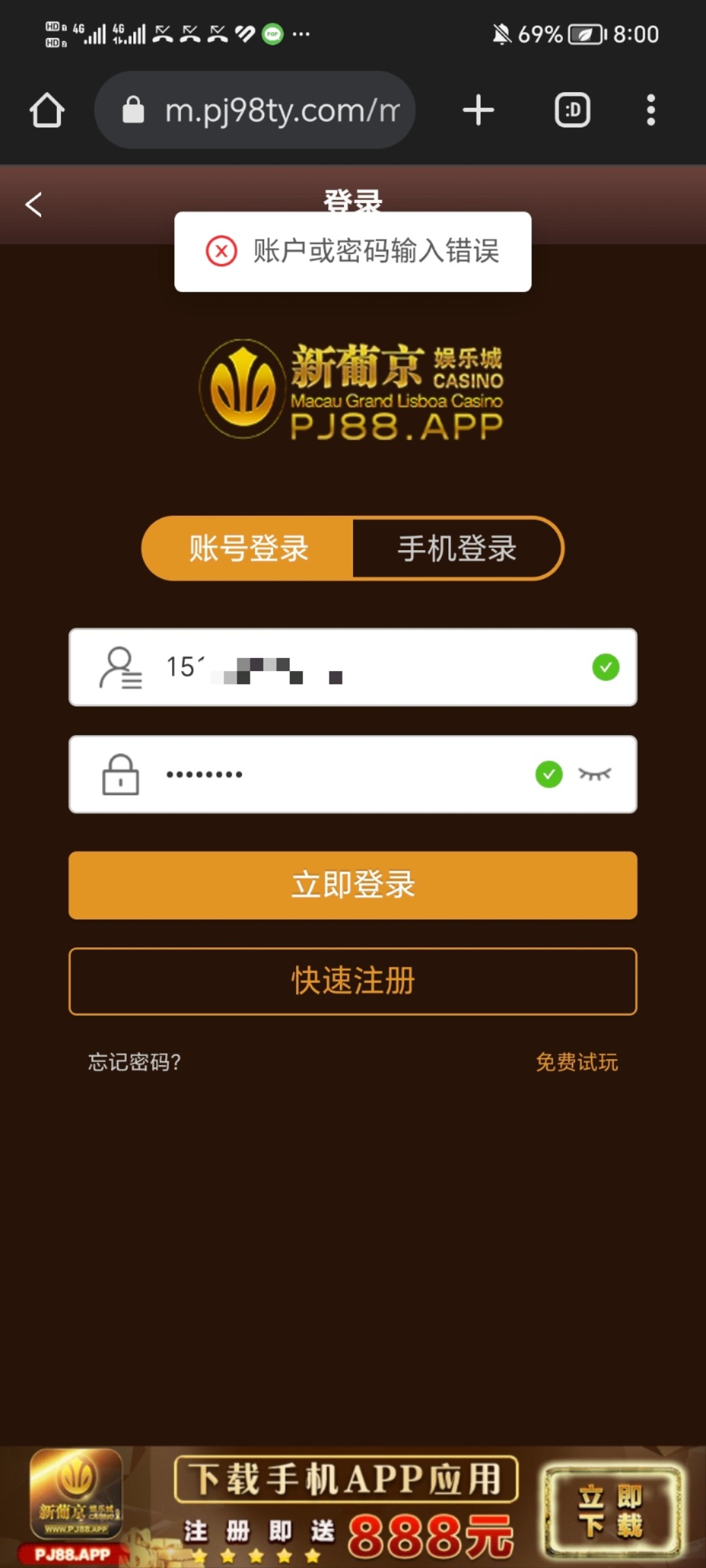 最开始打电话送8彩金注册账号了,添加pop人员,充值了100输了,打了一千多流水,然后第二次充值了100天天赖电话,就玩了,100送38app彩金,38彩金过了两关,提款了,然后取款密码提前被平台改了,我还不知道是黑平台,然后找客服,客服给我通知那边打电话改了,改了提款okpay.提了然后又电话,电话和我核实完,问要不要代理,我说不做,然后把电话挂了后,一直登录我账号,登录就被挤下去,再登录显示登录密码错误,短信验证码登录显示账号被封禁,哈哈,客服秒变成机器人,然后pop四五个客服人员秒删我,不是这点钱问题,这平台操作太恶心了,